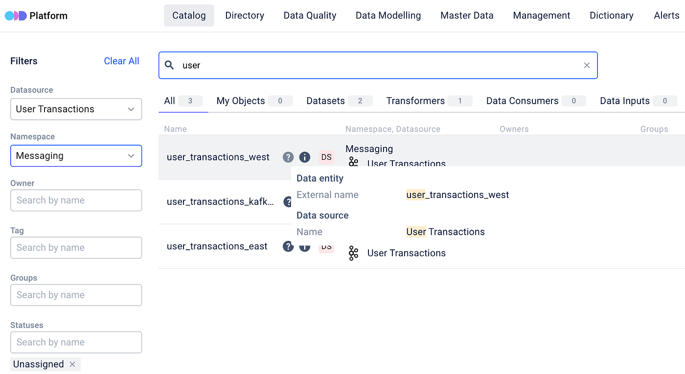 Whether it is by datasource, owner or tag, you have full control over how you want to narrow down your search results.